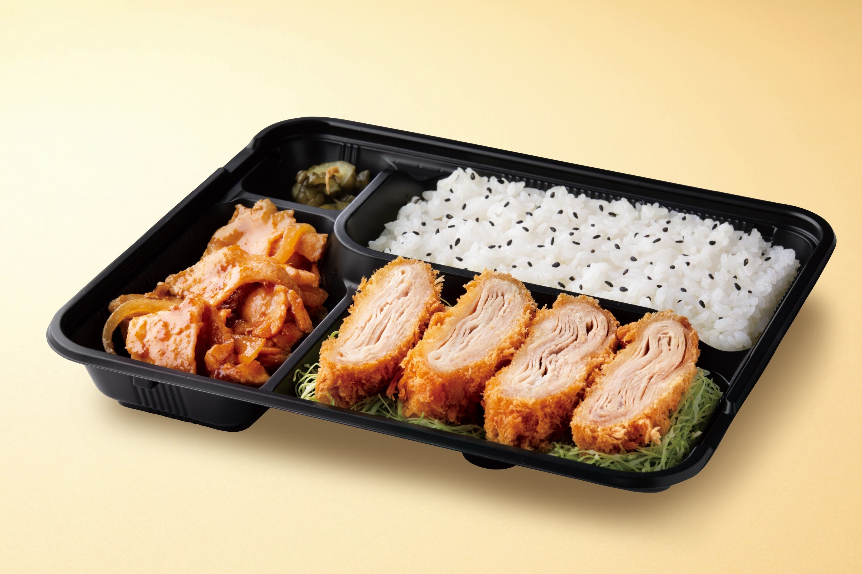 ■15層のミルカツ生姜焼き弁当(とんかつソースつき) 本体価格890円(税込価格961.20円)
