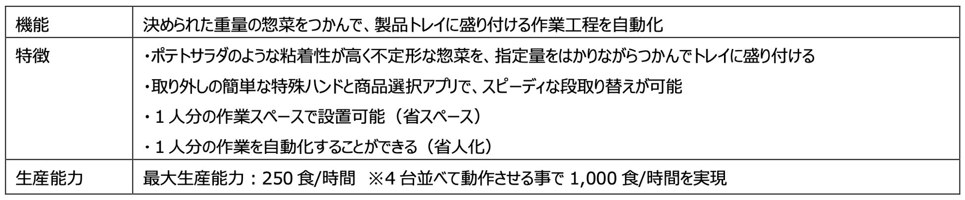 1、惣菜盛付ロボット(Delibot) デモ実動機