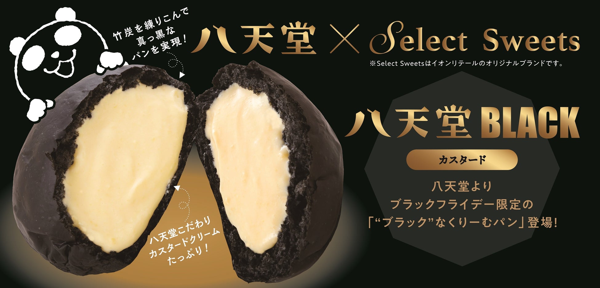 イオンは、11月23日(水・祝)~11月27日(日)※1、本州・四国の「イオン」「イオンスタイル」等約400店舗にて※2、「イオン ブラックフライデー」のスイーツ企画商品として、‟冷やして食べるくりーむパン”を製造・販売する昭和8年創業「八天堂」とコラボレーションした、初の“ブラック”なくりーむパン「八天堂BLACK」を期間限定で販売します※1)
