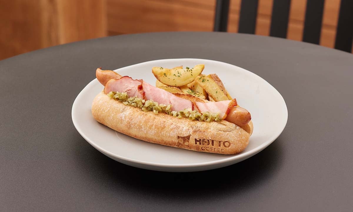 HATTOの看板メニューは、ホットドッグ。通常の約2.5倍の大きさのソーセージを使った「HATTOジャンボドッグ」をはじめ、満足感あるホットドックをご提供しています。オープン記念として、インスタフォローでお食事のセットドリンクが無料のキャンペーンを11月30日(水)まで実施中です!