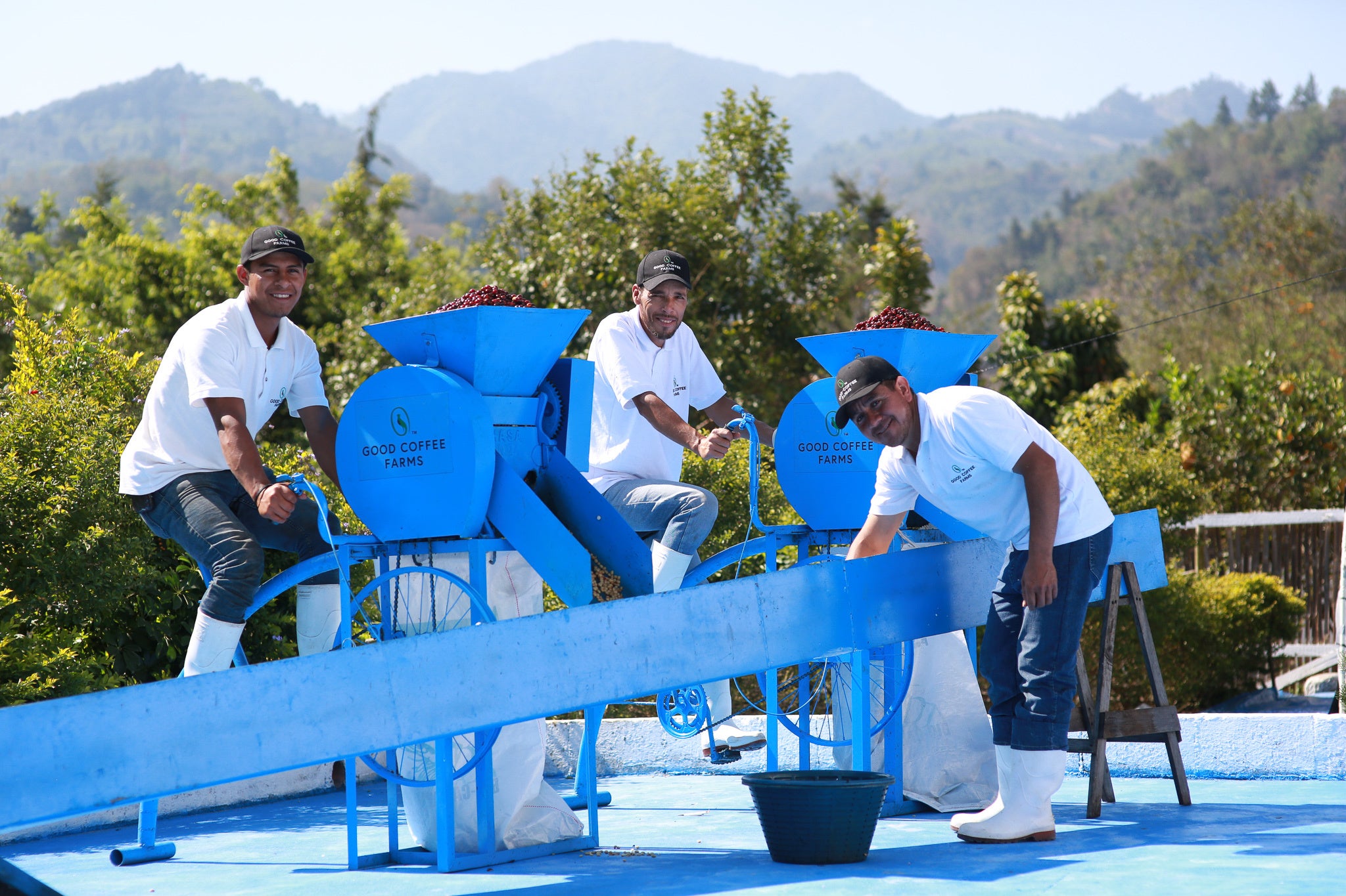 アイスコーヒー、ドリップホットコーヒーの豆はグアテマラの小規模農家と共にサステナブルコーヒーを生産しているコーヒー生産者団体GOOD COFFEE FARMSのものを使用しています。GOOD COFFEE FARMSでは豆を作る過程で、水・電気・燃料を使用しない自転車の脱穀機を使っています。従来から課題となっていた大規模な精製手段の壁を打ち破り、環境負荷を軽減しながら、金銭的余裕やノウハウの少ない小規模農家も精製プロセスに参入できる仕組みです。様々な点に配慮して大切につくられたコーヒーは多種多様なフルーツを思わせる風味、そしていつまでも口の中に続く余韻が特徴です。