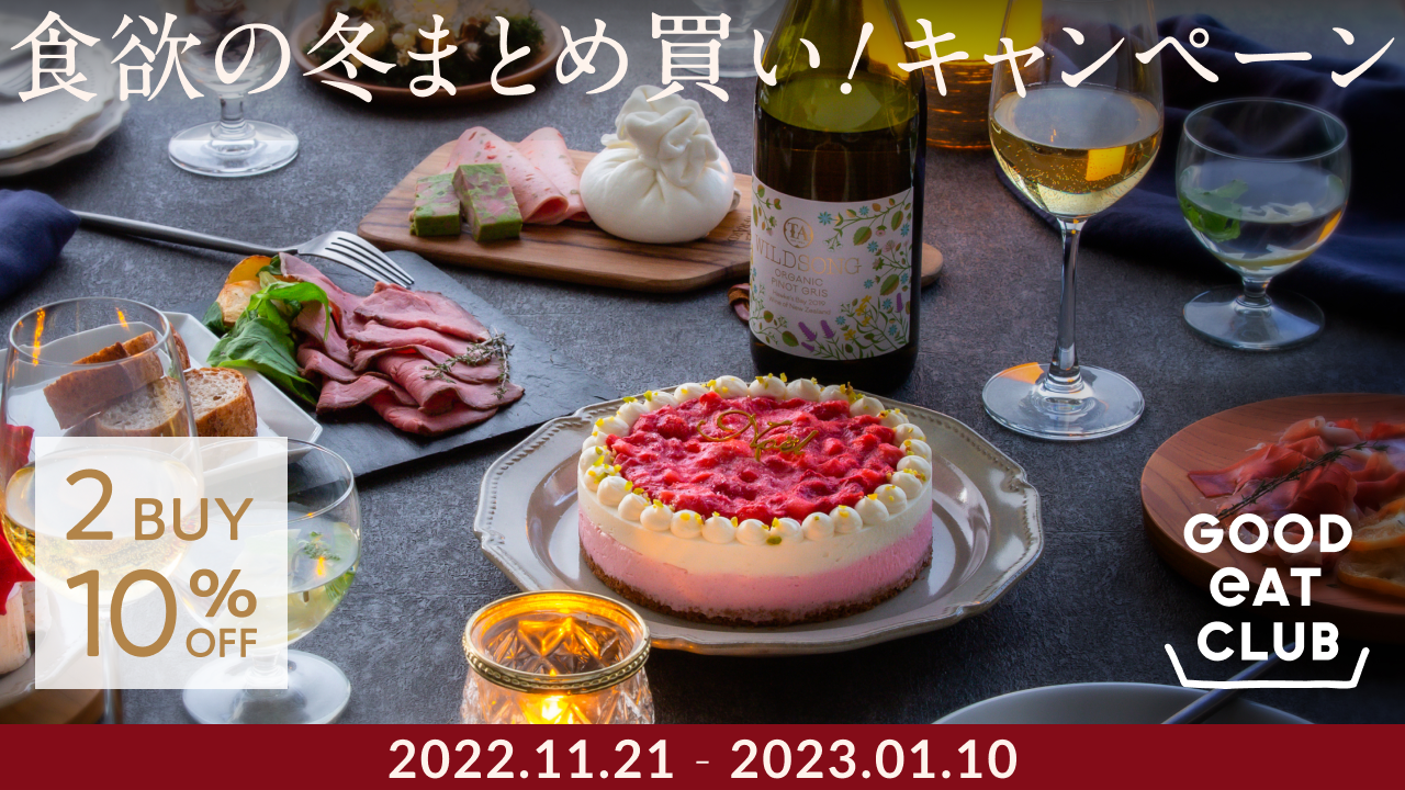 日本中の「愛すべき食」を集めたお取り寄せサイト「GOOD EAT CLUB」を運営する株式会社グッドイートカンパニー(本社:東京都渋谷区、代表取締役CEO:楠本修二郎、以下、グッドイートカンパニー)は、2商品以上のご購入で10%オフの割引キャンペーンを、2022年11月21日(月)〜2023年1月10日(火)の期間で実施することをお知らせいたします。