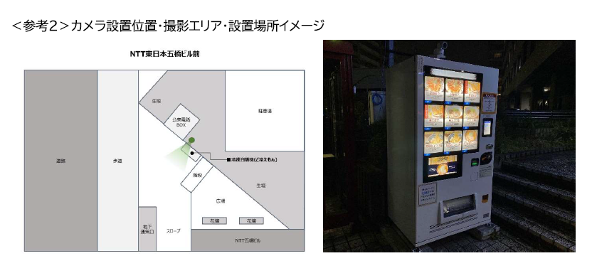 本実証では、冷凍自動販売機に設置したカメラで取得した映像から、即時にお客さまの特徴を示すデータを抽出し、そこから推定する性別、年代の情報を取得します。カメラで取得した映像は、性別、年代の情報取得後に即時に破棄しますので、活用するデータには個人を特定する情報は一切含まれません。