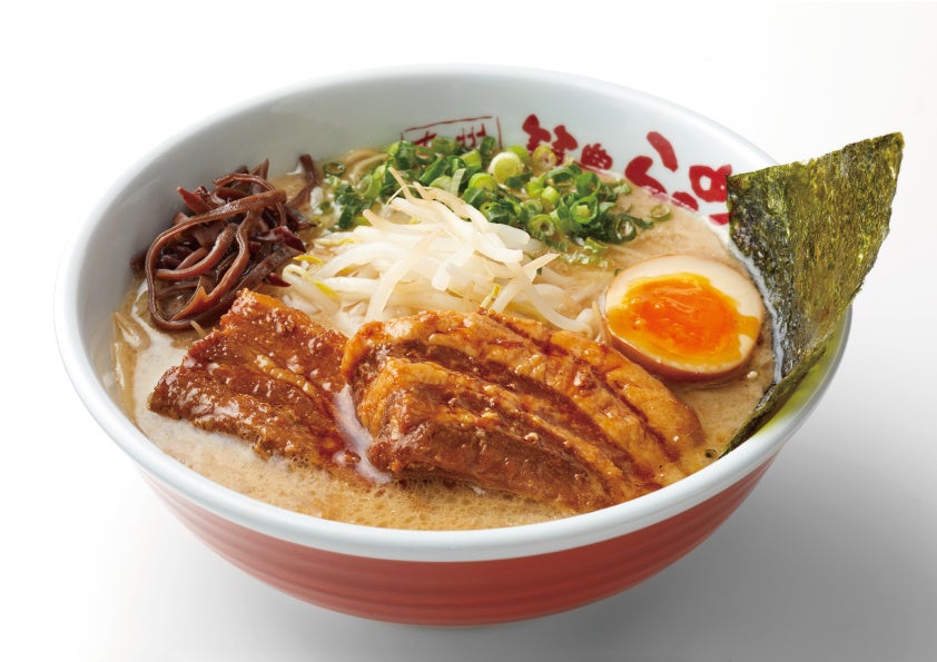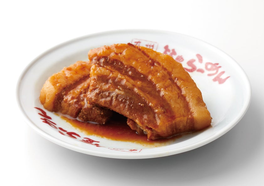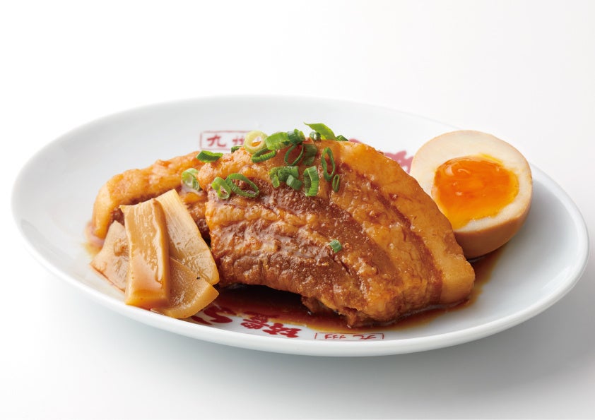 豚角煮2枚入、人気の煮玉子半分、焼のりをトッピングしたボリューム満点のラーメン。甘辛タレがとんこつスープに絶妙にマッチします