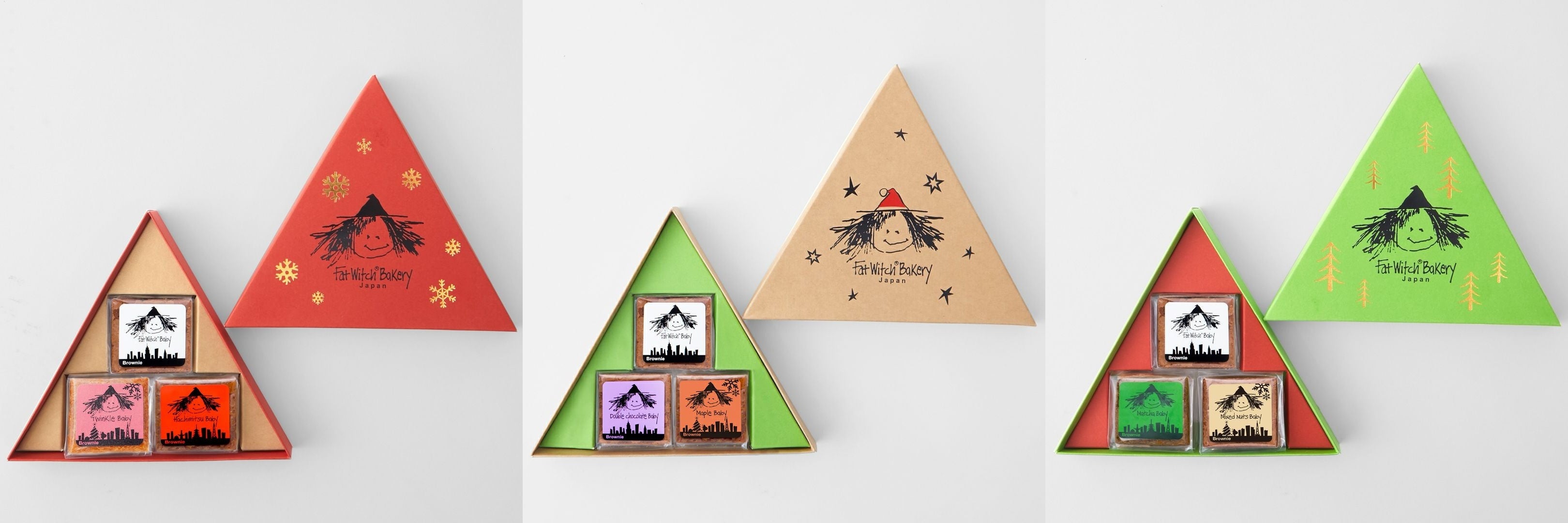 クリスマス限定フレーバーが各1種、Fat Witch Bakery定番のレギュラーフレーバー各2種ずつ入ったセット。クリスマスツリーをイメージした三角のお箱にブラウニーを詰め合わせました。ちょっとしたお手土産やプレゼント、自分へのご褒美としてもおすすめです。