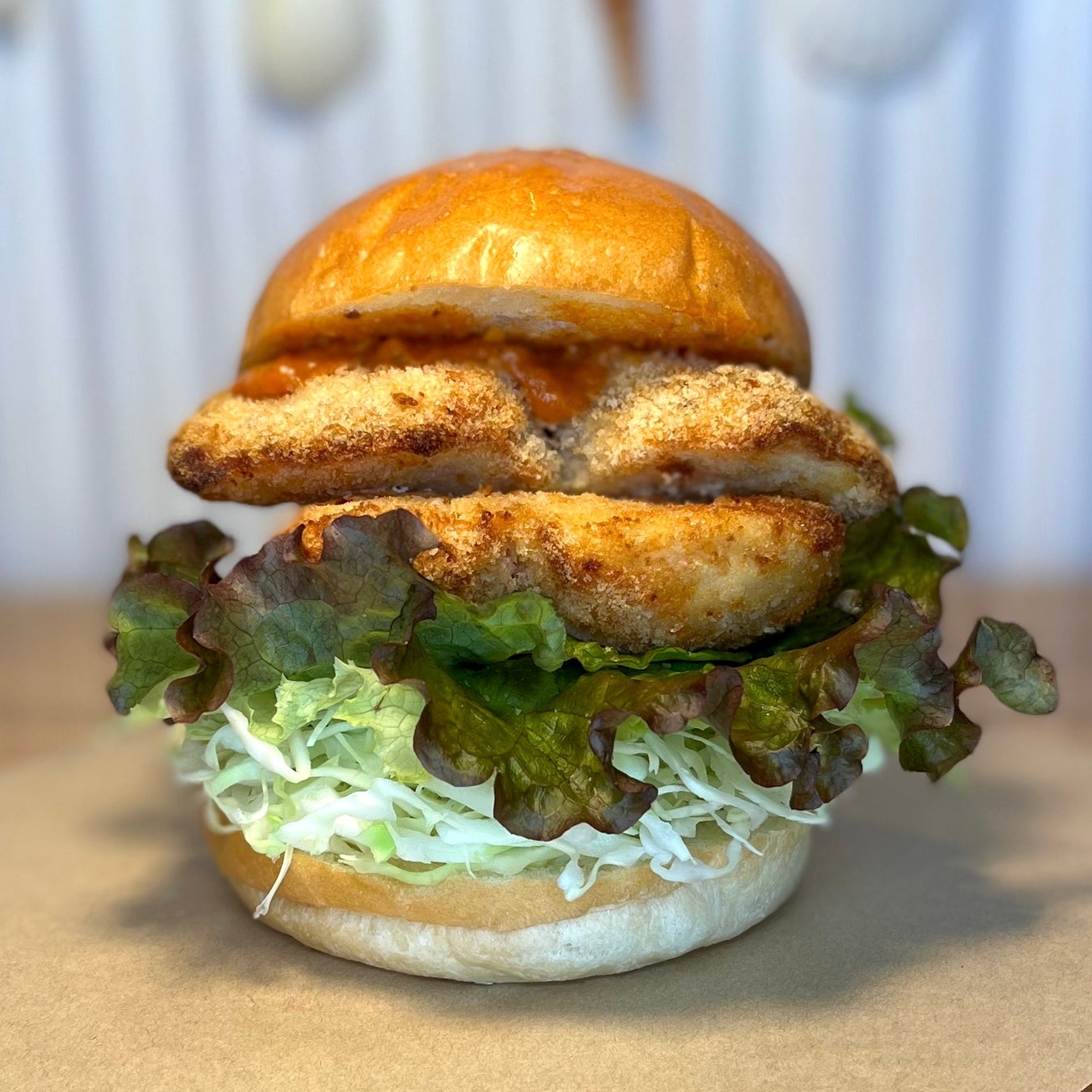 シーフードに特化し、油で揚げないノンフライシーフードのバーガーを提供する小さなお店です。