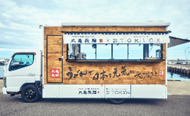 そして、城島さんとは、日本全国の方からご応募いただいた熱い想いに応え、「手づくり・できたてのおいしさ」がつまった丸亀製麺のうどんを、キッチンカー「笑顔うどん号 にこまる」で各地を巡り、想い出の一杯をふ るまい、皆さまに笑顔をお届けする「キッチンカープロジェクト」を実施しています。