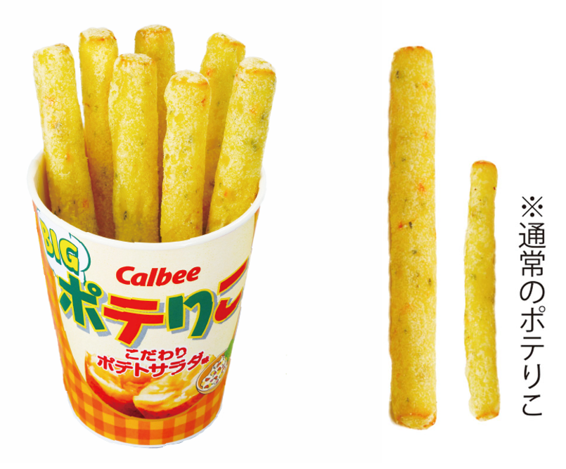 商品説明:通常の「ポテりこ」がBIGになりました。太くしたことで、「ポテりこ」のサクッ、ホクッとした食感、じゃがいもの味わいがいつも以上に楽しめます。オニオンがきいた一味違うデリ風のポテトサラダ味をぜひ食べ比べてほしいです。