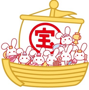 - 2023年の卯年に合わせた、七福神の雪見うさぎが 宝船に乗ったおめでたいイラストにしています。
