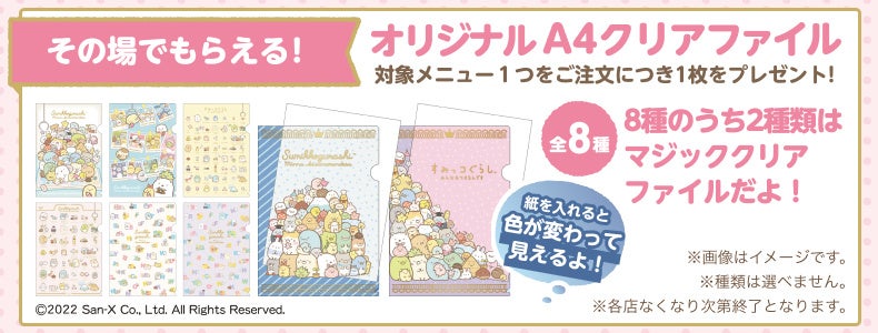 ※11/22(火)10:00~12/6(火)9:59の期間内で、各店舗「オリジナルもこもこA5クリアファイル」が終了次第、