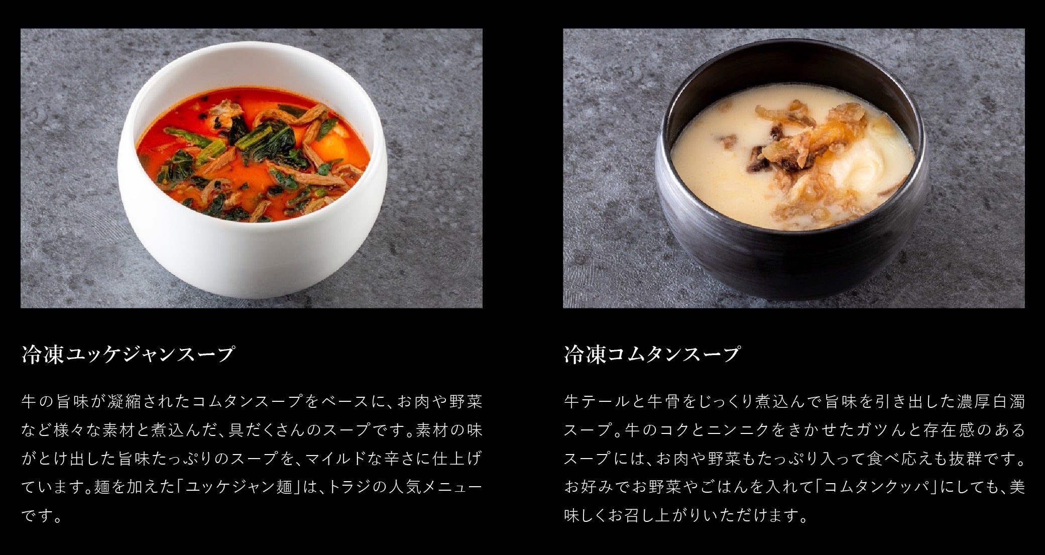 トラジ定番のお肉4種類に本格冷凍スープがついた「焼肉トラジ堪能セット」が期間限定1129円OFF!更に期間中は全商品ポイント10倍!!