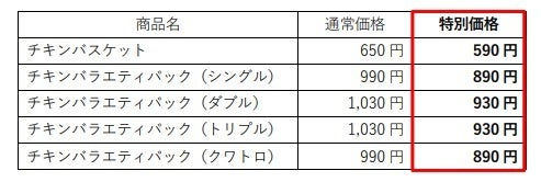 チキンバラエティパック(シングル) 通常価格990円⇒特別価格890円