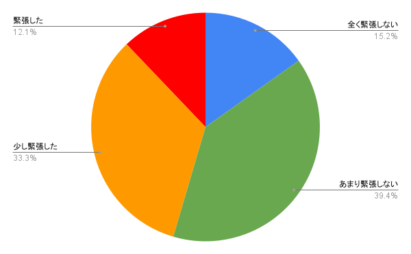 45.4%(約半数の方)が「緊張した」、「少し緊張した」と回答しました。