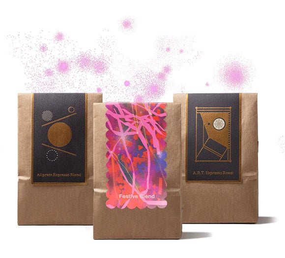 Festive Blendに加え、定番のオールプレス・ブレンド、エスプレッソ・ローストも楽しめる、ギフトにもぴったりなセットです。