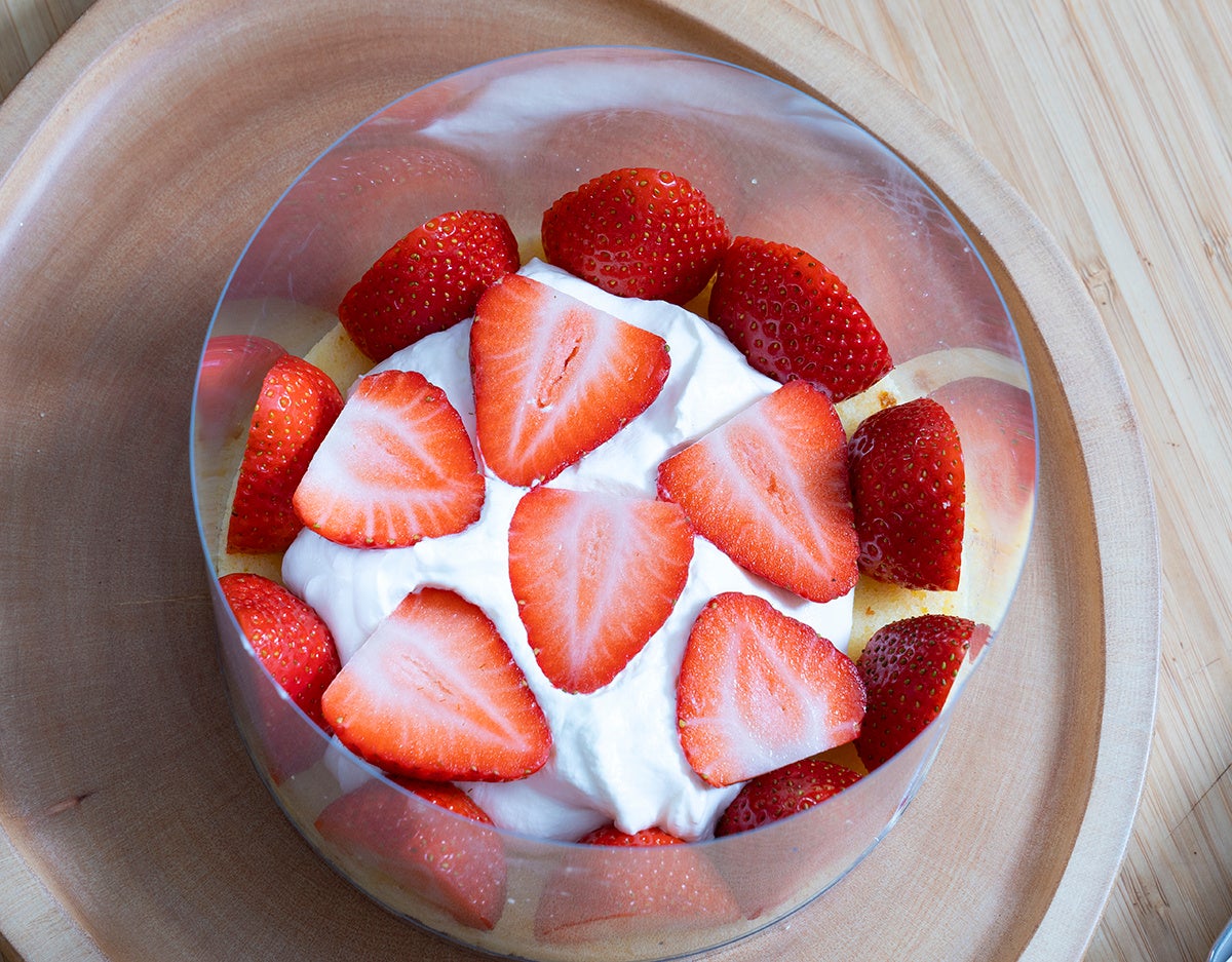 古都華は芳醇で、強い甘味と酸味が特徴です。この程よい酸味があることで、ケーキに使ったときにクリームや生地の甘みとマッチするのです。クリームやスポンジ生地は、イチゴの味わいを存分に味わってもらえるように工夫をこらしました。