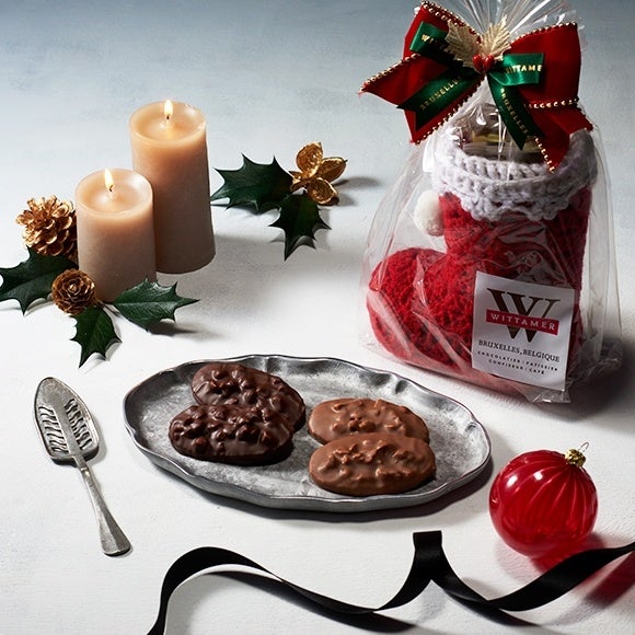 真っ赤なブーツにサクサクのマカダミア・ショコラを詰め合わせ。
