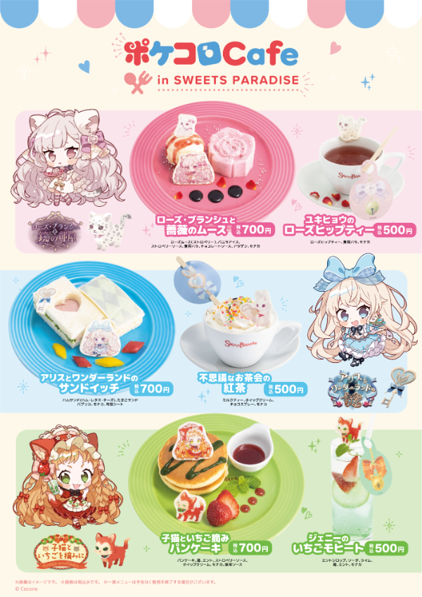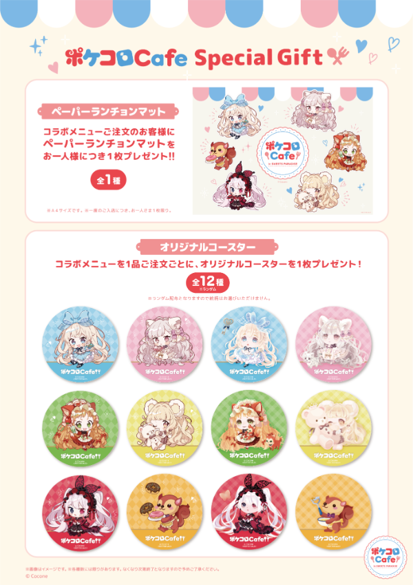 また、各店舗ではコラボカフェご利用のお客様限定のノベルティプレゼントや、「スイーツパラダイス」限定オリジナルグッズの販売も予定しています。本コラボの最新情報は、『ポケコロ』公式Twitterアカウントやアプリ内で順次お知らせします。コラボ詳細や注意事項、各店舗のご利用及び予約方法は下記のコラボページをご確認ください。