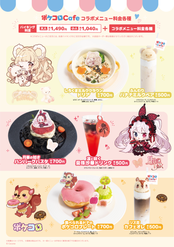 ※コラボメニューのご利用には、コラボメニュー代金と別途スイーツパラダイス・バイキング代金(大人1490円/小人1040円 ※いずれも税込)のご注文が必要です。