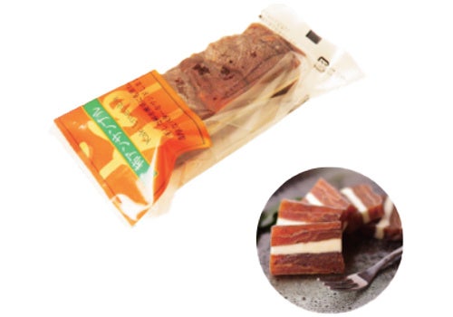 ↑【柿アンサンブル】干し柿にバターをサンドした自然の甘さのスイーツです。紅茶やコーヒーはもちろん、ワインやブランデーなどの洋酒を合わせるのもおすすめ。5ミリ程度に切って少しずつ召し上がってください。(140g)税込1,200円