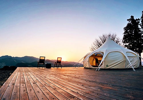 奈良県五條市の”農×里山体験”ををコンセプトにした1日2組限定のアウトドア施設”天地のテラスゆしおFarm&experience”その名前の通り、天に地があるような絶景をお楽しみいただけます。