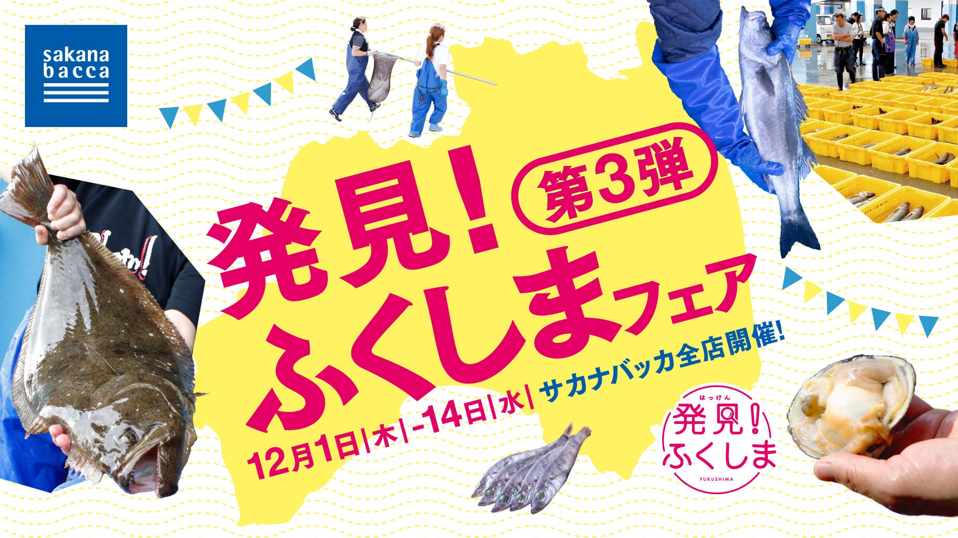 このような過去の取り組みや実績から、東京電力ホールディングス株式会社と連携し、福島県産水産品の風評被害払拭のために消費者に美味しさや魅力を知っていただくフェアをsakana baccaにて2021年11月と2022年3月の2回実施してまいりました。そしてこの度第3弾となる『発見!ふくしまフェア』を「sakana bacca」全店舗にて開催いたします。
