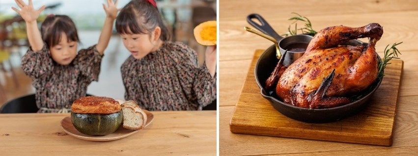 今年も100本のスプーンのシェフがオトナもコドモも楽しめる、クリスマスコースを考案。見た目にも楽しい料理がテーブルを彩ります。大きなかぼちゃに入ったグラタン、丸鶏には自家製ソースを添えて。デザートのケーキは、今年も皆さんに仕上げていただきます。ケーキのデコレーションって、オトナもコドモもワクワクするものですよね。