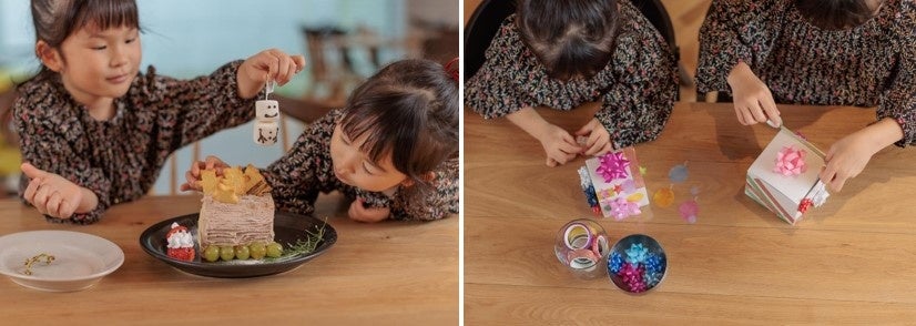 - 店内に流れるのはサンタクロースの物語。ストーリーに合わせて料理が楽しめます。コース料理を楽しむ間に、プレゼントのパッケージデザインのお手伝い!?