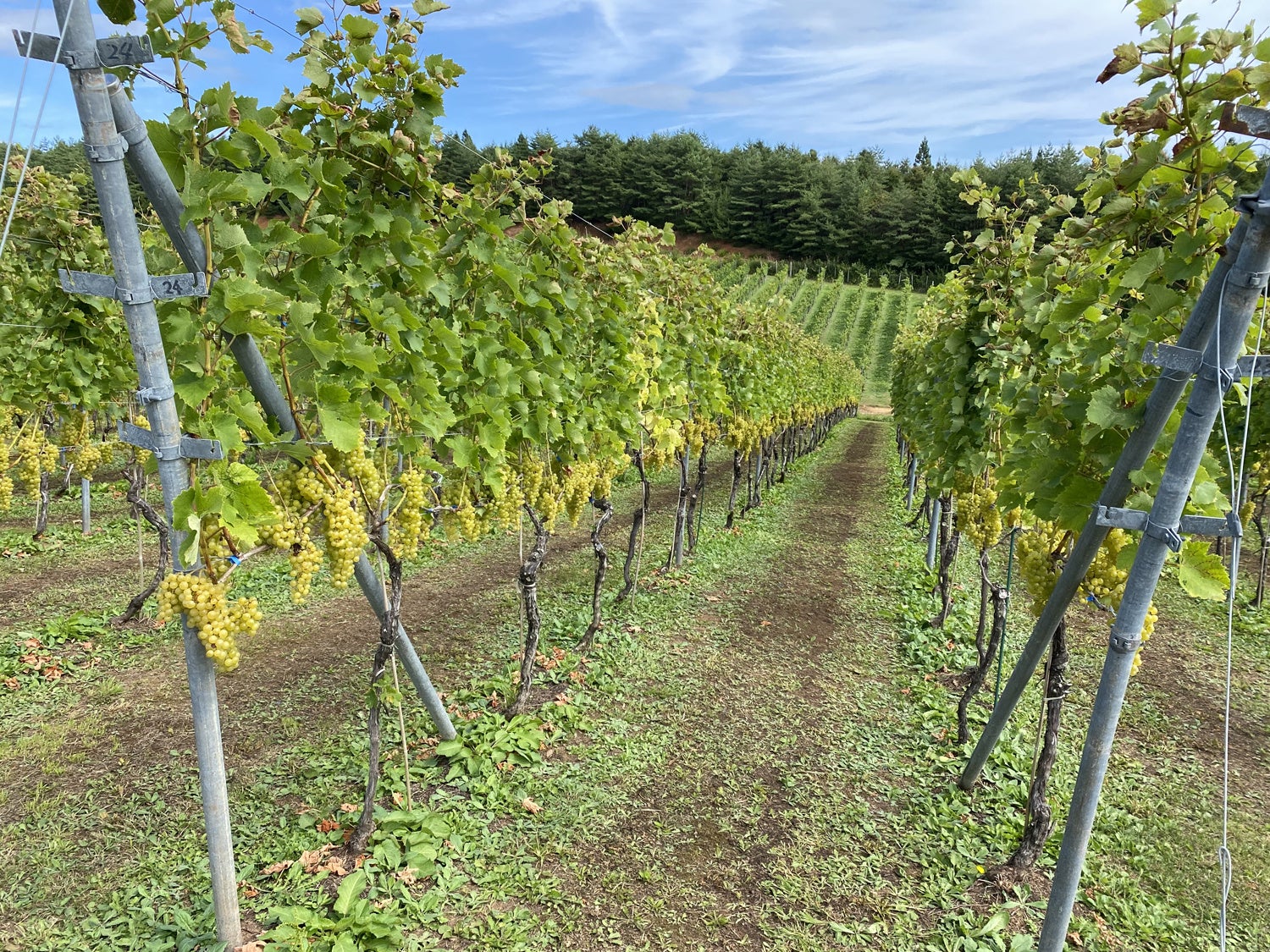 梅雨時期の雨量は例年並みでしたが、開花期から結実の時期に少量の雨が降りました。結実不良が心配されましたが、結果的に杞憂に終わりました。8月に入ると雨量が多くなり、日照不足が懸念されましたが、中旬以降に回復し、例年よりも早いタイミングでヴェレゾン期に入ることができました。夏期全体を通しての雨量が少ないことが幸いし、副梢の摘芯と除去、誘引、草刈り等の作業を遅延なく進めることができました。