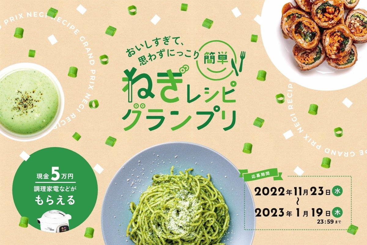 開催期間は11月23日の「ねぎの日」から、2023年1月19日まで。お母さんがねぎを刻むちょっとの手間をなくしたい、食事をつくる人の応援隊でありたいという私たちの想いから、作るのが楽で手軽で、おいしくできる簡単ねぎレシピを募集いたします。青ねぎ、白ねぎ、細ねぎ、九条ねぎなど、使うねぎの種類はなんでもOKです(応募方法は以下のコンテスト概要をご覧ください)。