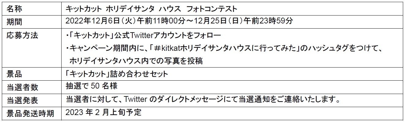 「キットカット ホリデイサンタ ハウス」のオープンに合わせて、フォトコンテストを実施します。