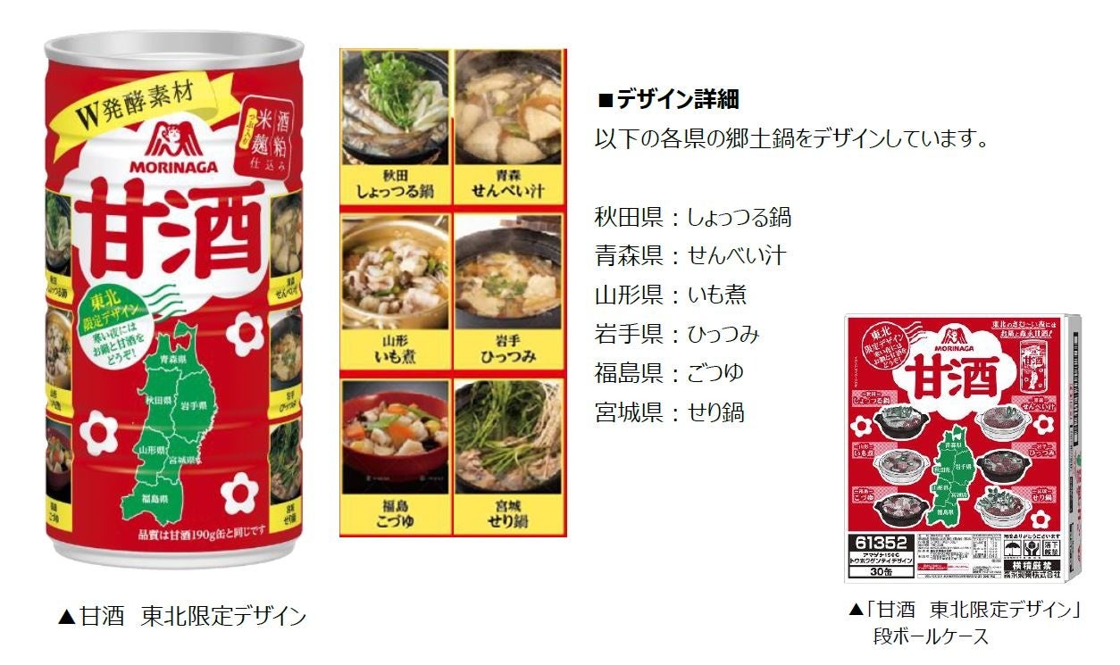 森永製菓株式会社(東京都港区芝、代表取締役社長・太田 栄二郎)は、甘酒市場のトップブランドである『森永甘酒』から、「甘酒 東北限定デザイン」を東北地方限定で、2022年11月下旬頃より期間限定で発売します。