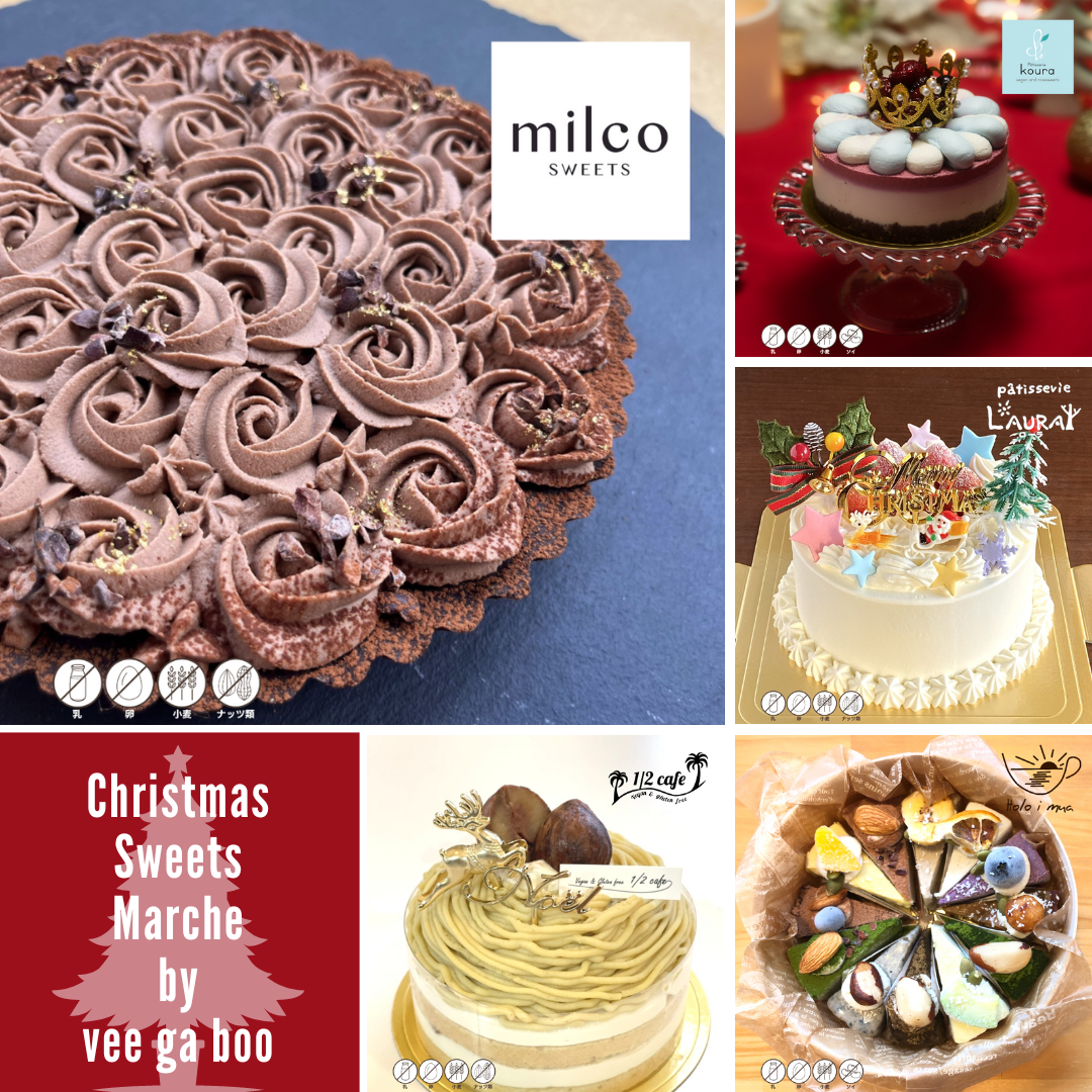 『Christmas Sweets Marche by vee ga boo』では、乳・卵・小麦不使用だけではなく、ナッツフリーやソイフリーのスイーツも展開いたします!