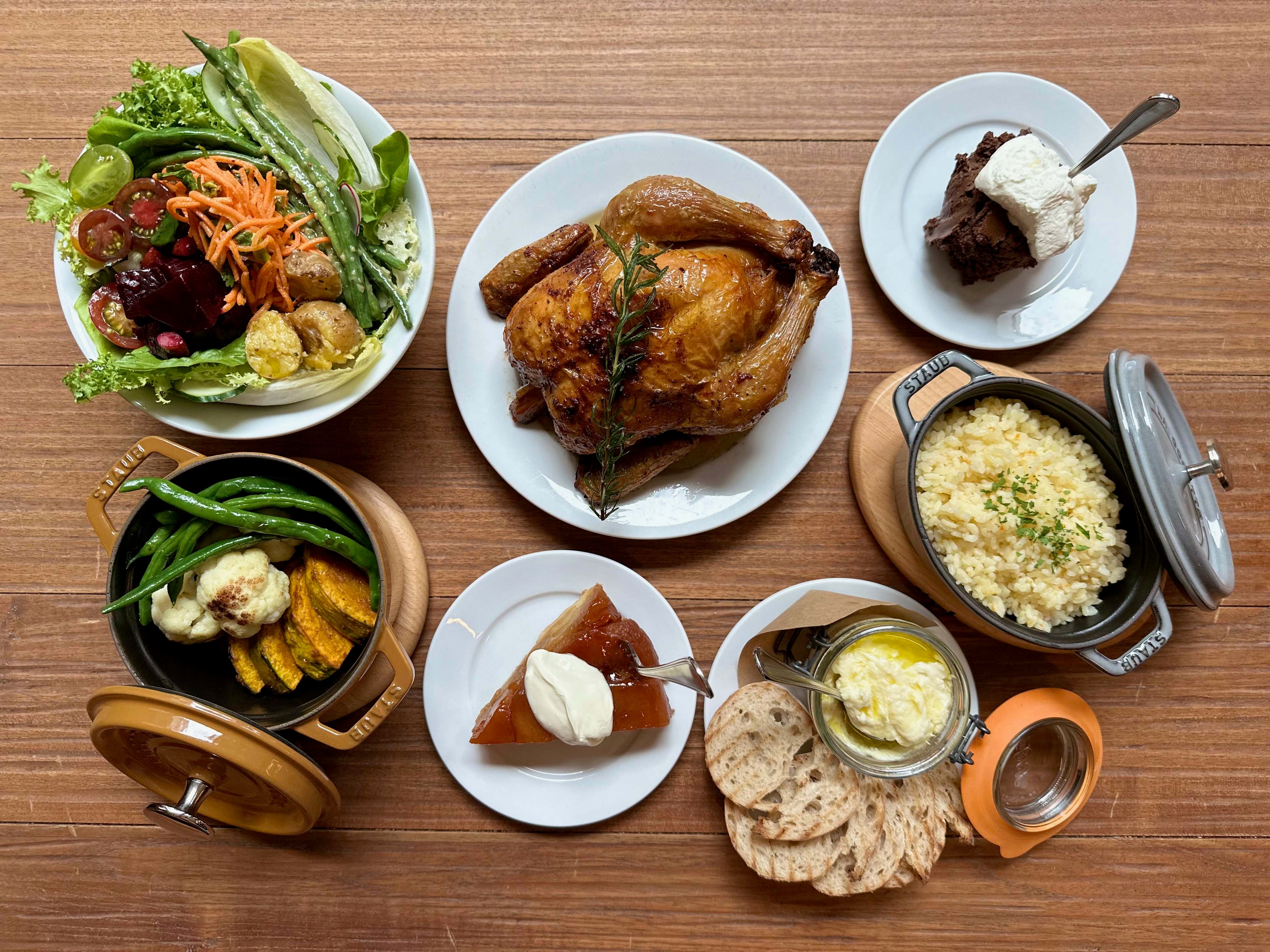 朝から晩まで一日を通し、オールデイで楽しめる“街の食堂”として、どこか懐かしくハートウォーミングで伝統的なフランスの料理を小さなお皿に凝縮させるスタイルで提供する、好きな時に好きな使い方で楽しめる食の空間、それが「Buvette」です。 この度のテイクアウトで販売するミールキットは、若鶏のローストをメインに、前菜やサラダ、Buvette人気のデザート2種(チョコレートムース、タルトタタン)に至る充実の内容で、ご自宅で気軽に「Buvette」の世界観が生かされた料理の味をお楽しみいただけます。