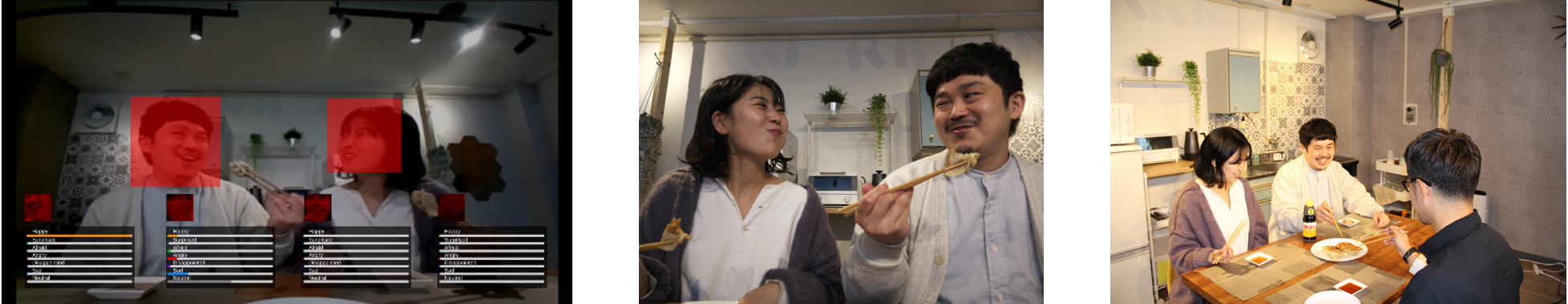 『しあわせ、ぽん!カメラ』の開発にあたり、最も難しかった部分は、どんな瞬間を「しあわせな瞬間」と定義して、シャッターを切るべきなのか、そのアルゴリズムを開発するところでした。開発チームでも何度も食卓を囲み、テスト撮影をしながら、AIによる表情解析データを読み解き、様々な表情データの掛け合わせを試行錯誤することで、『しあわせ、ぽん!カメラ』は味ぽんが毎日見ている”しあわせ”を可視化することに成功しました。