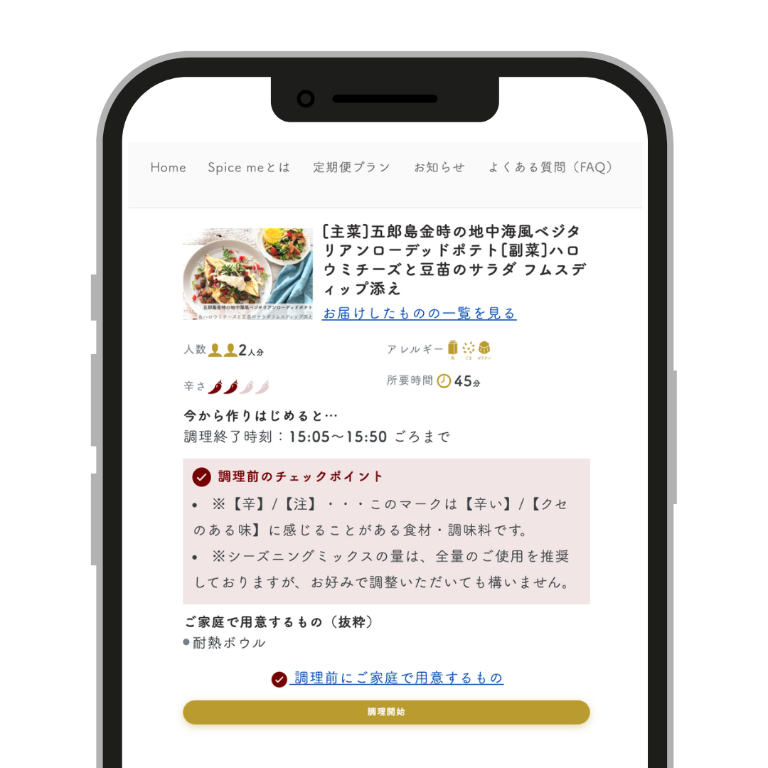 海外で食べられるような本格的でスパイシーな料理を中心にミールキットをお送りします。食材やスパイスはレシピの分量でお送りしますので余ったスパイスに悩むこともありません。