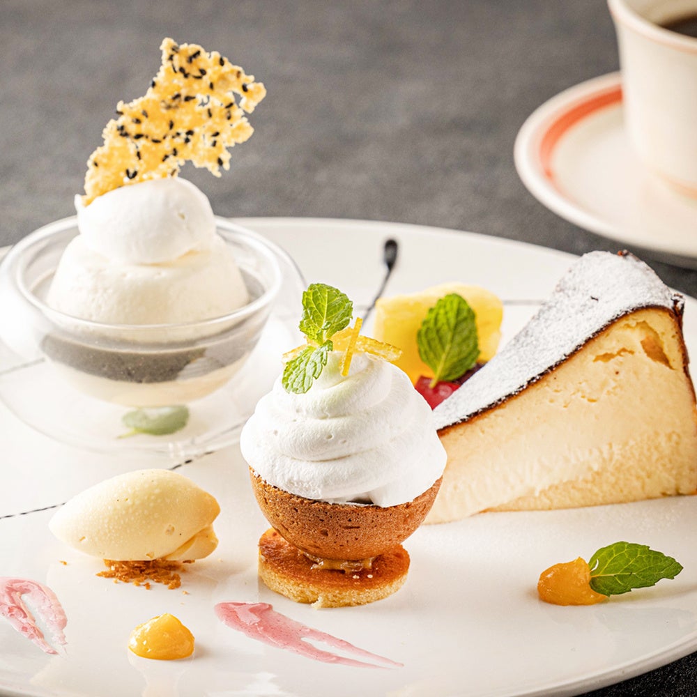 冬の新作スイーツから、しっとりとした口触りの豊かなゆず香るムース「ゆずのタルト オ シトロン」、濃厚なごまのコクと香ばしい風味が広がる「白ごまのブランマンジェ」、そしてたっぷりのクリームチーズで焼き上げるKIHARUの人気スイーツ「バスク風チーズケーキ」の3品を、ワンプレートにしてご用意します。