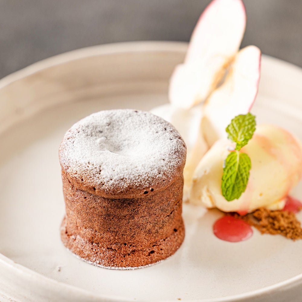 柔らかな果肉を感じる甘酸っぱいりんごを、温かいフォンダンショコラの中に忍ばせました。ほんのりと苦味を感じるチョコレートがりんごの甘味をひきたてる、大人のスイーツです。