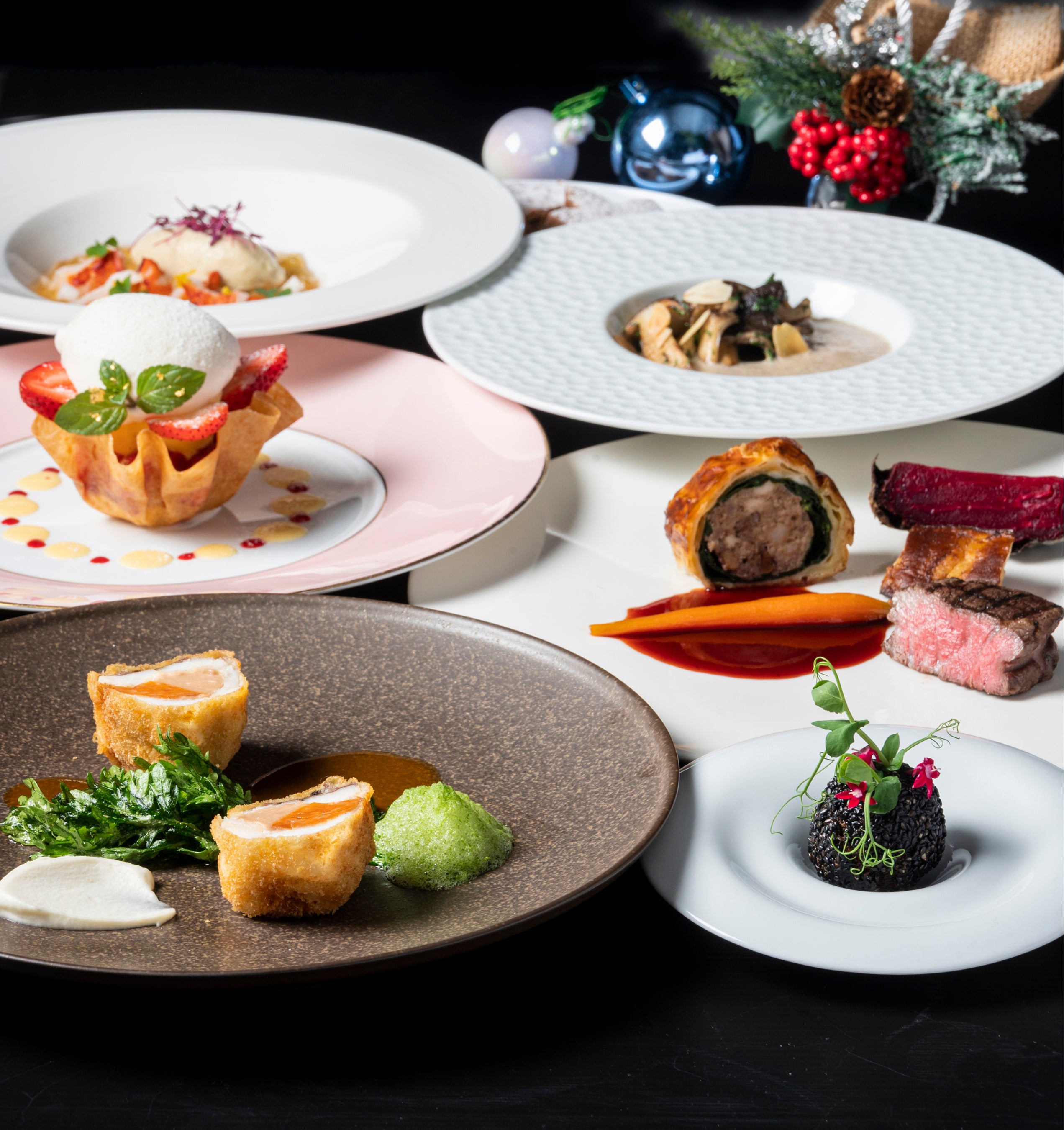 12月23日(金)~25日(日)のディナーコースでは、冷前菜、メインディッシュ、デザートの内容を変更して用意します。