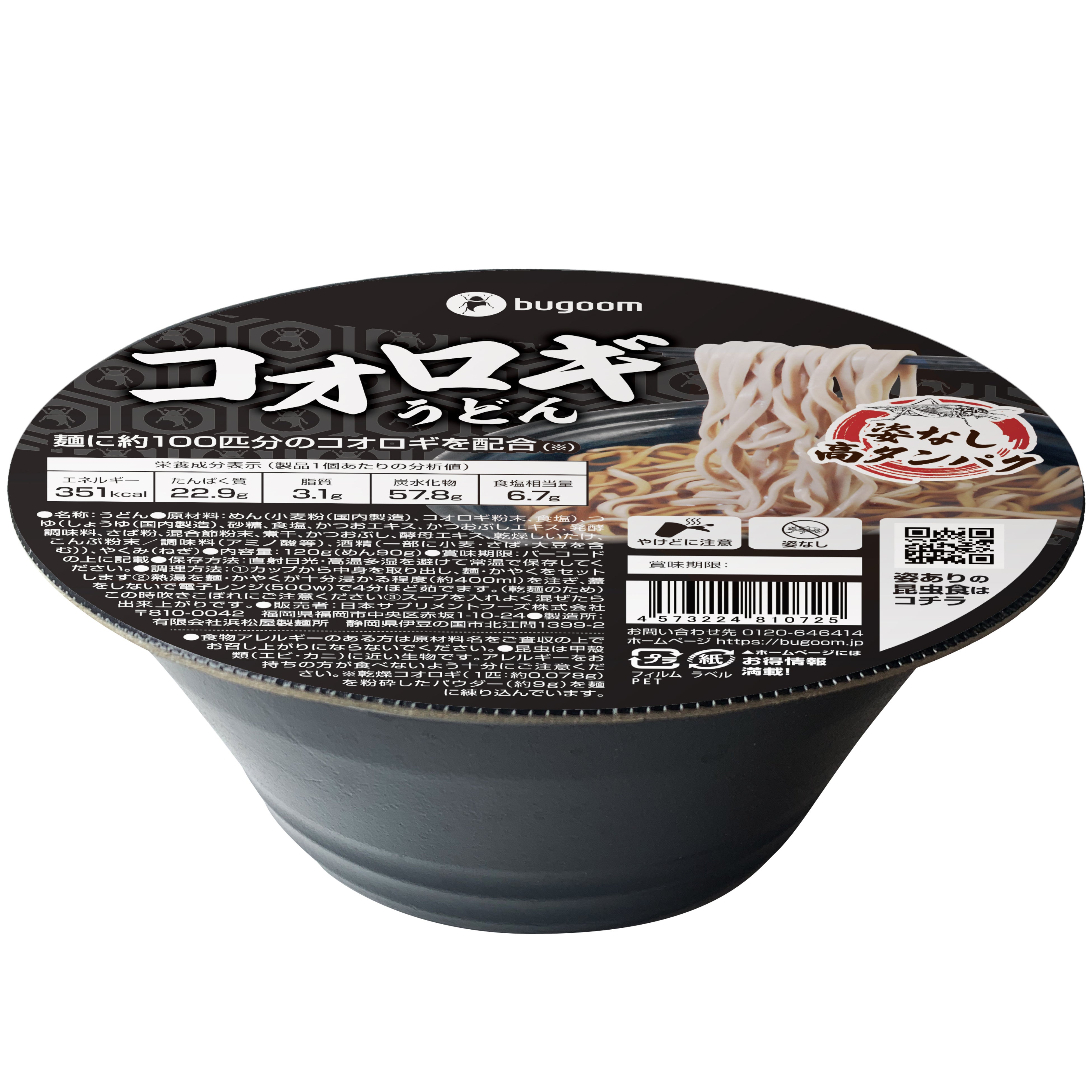約100匹分のコオロギが麺に練り込まれたコオロギうどんは、昆虫の姿を感じることなく昆虫由来のタンパク質を摂ることができる国内初のオリジナリティに溢れるカップ麺です。当ブランドの公式通販サイト「bugoom online shop」の売上ランキングでは連日上位を記録するほど人気の商品となっております。その魅力をもっとたくさんの方々に知って頂きたいという思いから、パッケージをリニューアルする運びとなりました。
