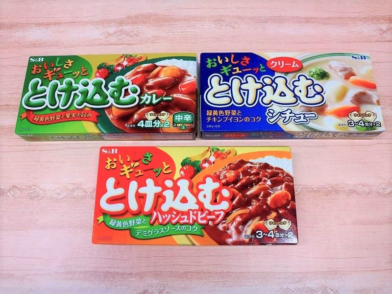 おいしさギューッととけ込むカレー、おいしさギューッととけ込むシチュークリーム、おいしさギューッととけ込むハッシュドビーフ