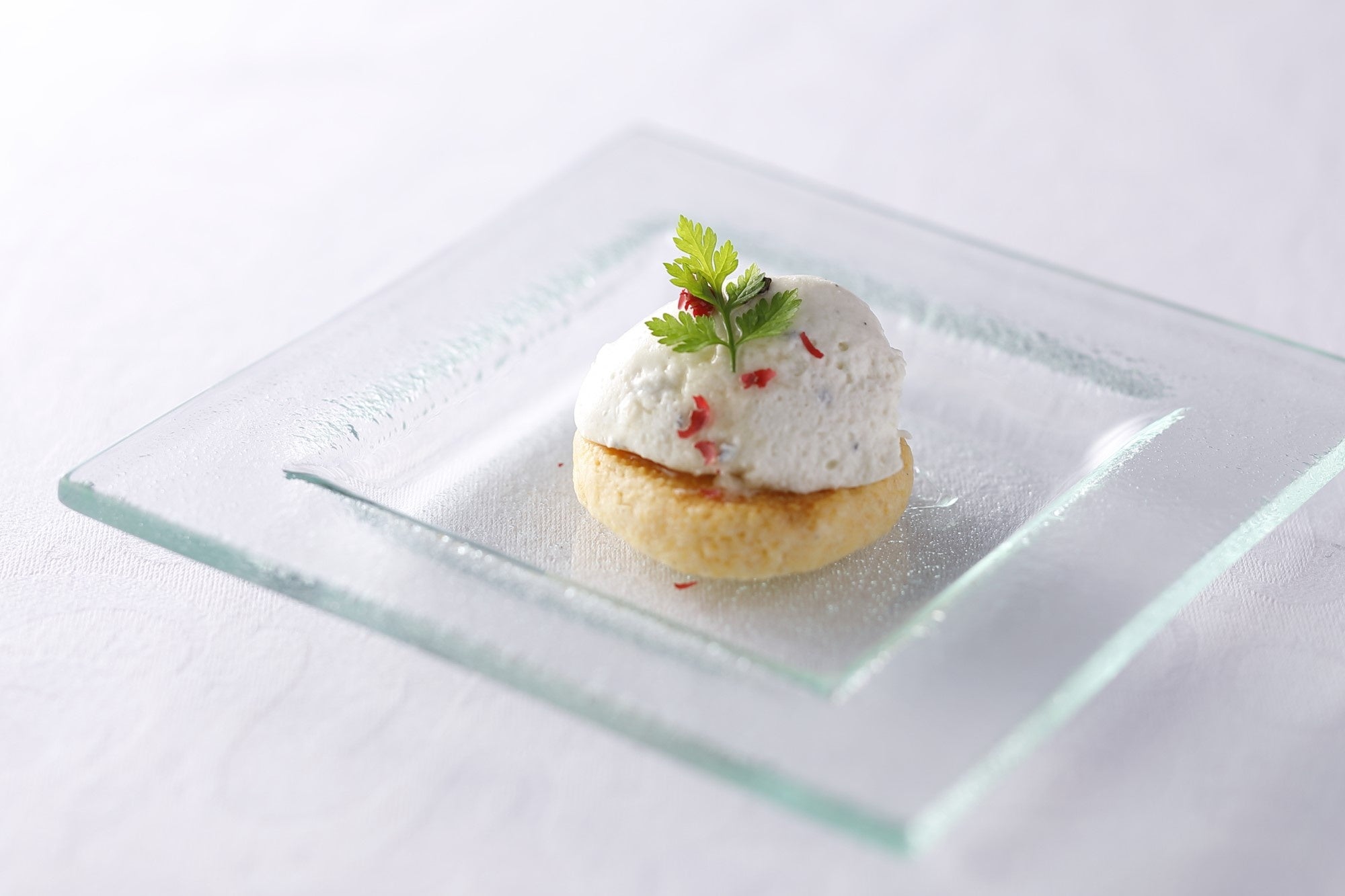 - ズワイ蟹とカリフラワーのムース アメリケーヌソース