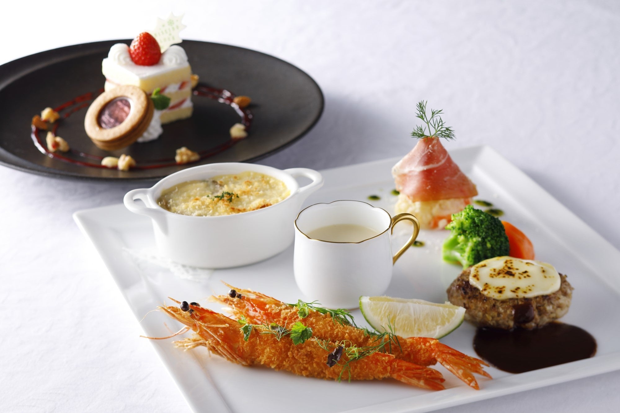 資生堂パーラーでお子さまに人気のメニューがプレートに勢ぞろい。パティシエが心を込めて作ったかわいらしいクリスマスケーキ付です。