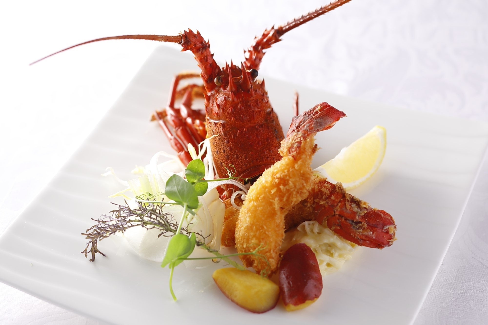 伊勢海老を一尾丸々フライにすることで、海老のエキスを損なわず仕上げました。