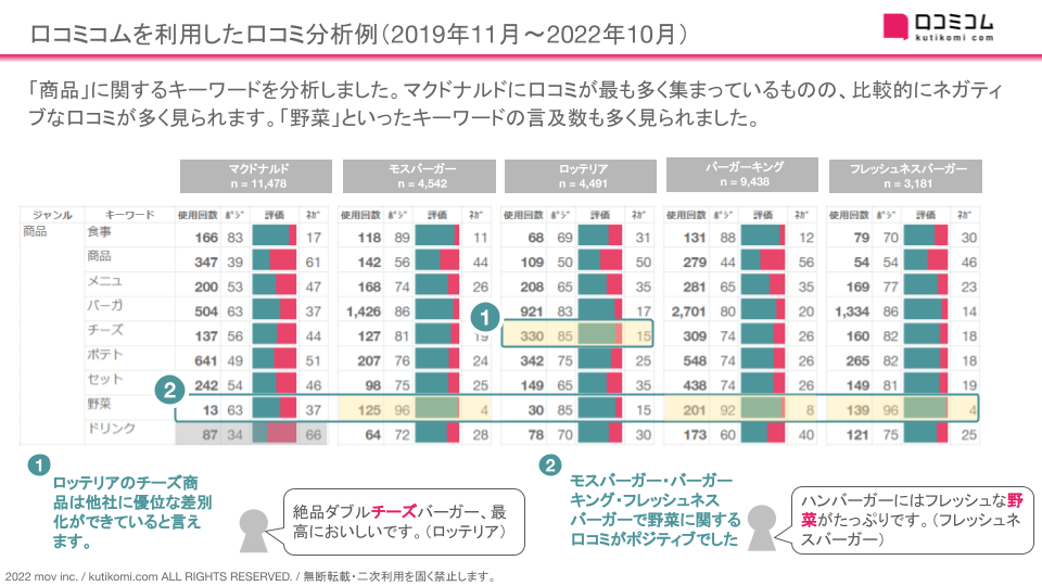 ・モスバーガーは「野菜」に関するポジティブな口コミが多いこと
