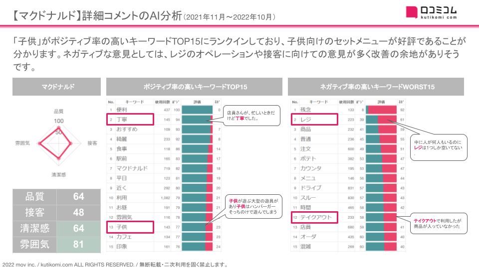 【マクドナルド】詳細コメントのAI分析(2021年11月〜2022年10月)