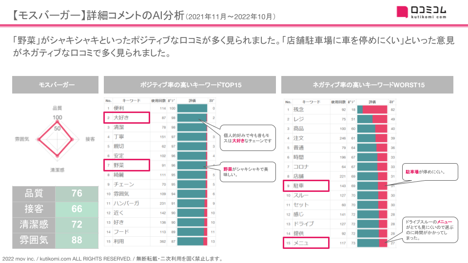 【モスバーガー】詳細コメントのAI分析(2021年11月〜2022年10月)