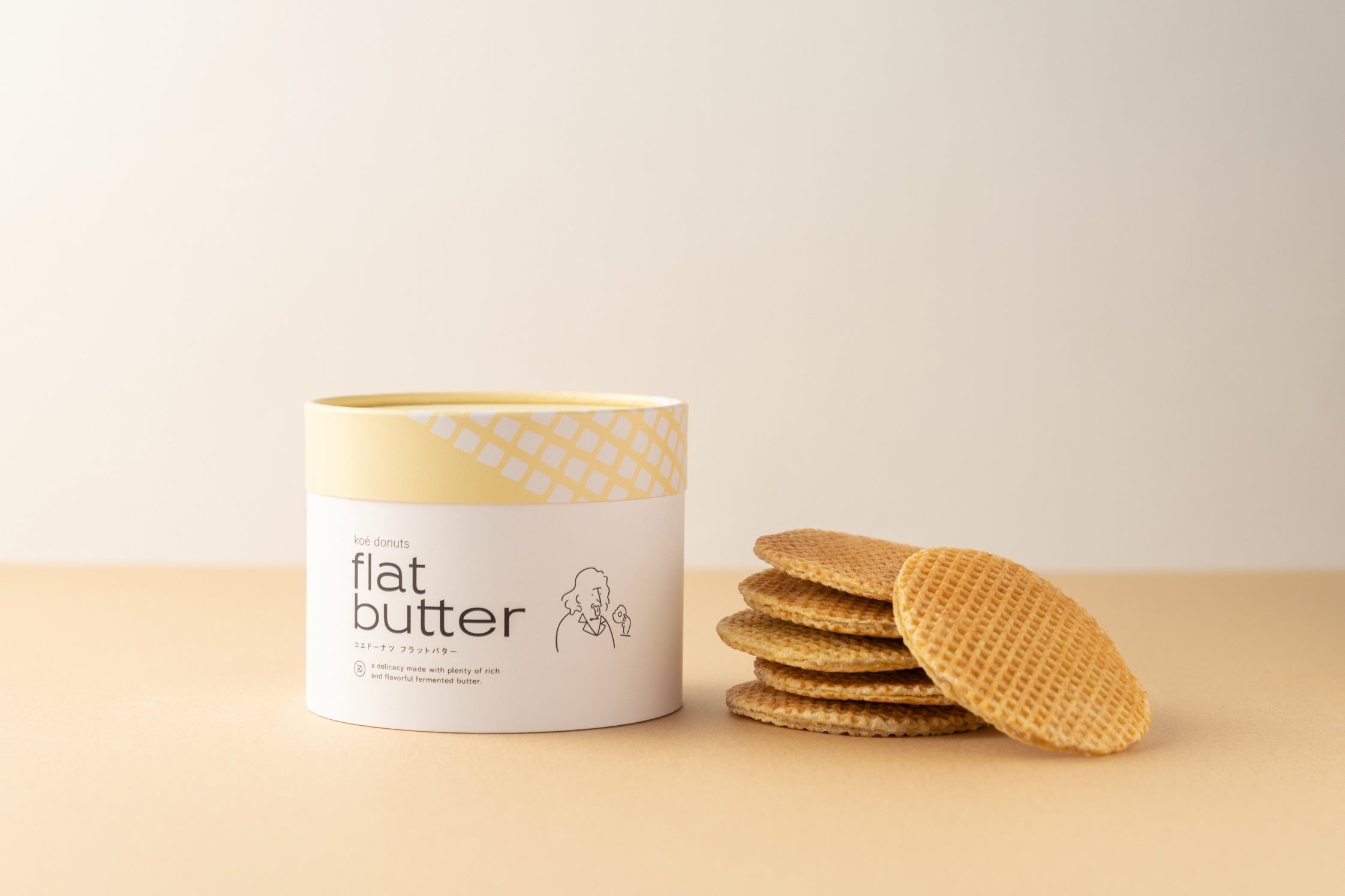 また、バターをキーワードとする本期間中、オンラインショップ限定商品の「koe donuts フラットバター」を店舗でも販売いたします。koe donuts フラットバターは、自家製のシュガーバターをもっちりした薄焼きのドーナツ生地でサンドしたお菓子。発酵バターのクリーミーな味わいと砂糖のシャリシャリ食感をお楽しみいただけます。この機会にぜひお試しください。