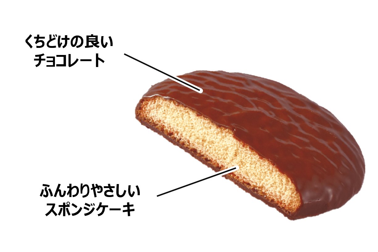 1997年発売のロングセラー商品です。丸く焼き上げたスポンジ生地にチョコレートをコーティングした、やさしく素朴なおいしさが特徴です。どこか懐かしく飽きのこない味わいで、お子さまから大人の方まで幅広い方にお楽しみいただいております。満足感たっぷりの2枚入りで手ごろな価格のため、いつでも気軽に、小腹を満たすおやつや軽食として召し上がっていただくほか、親子でシェアしていただくなど様々なシーンでお楽しみいただけます。
