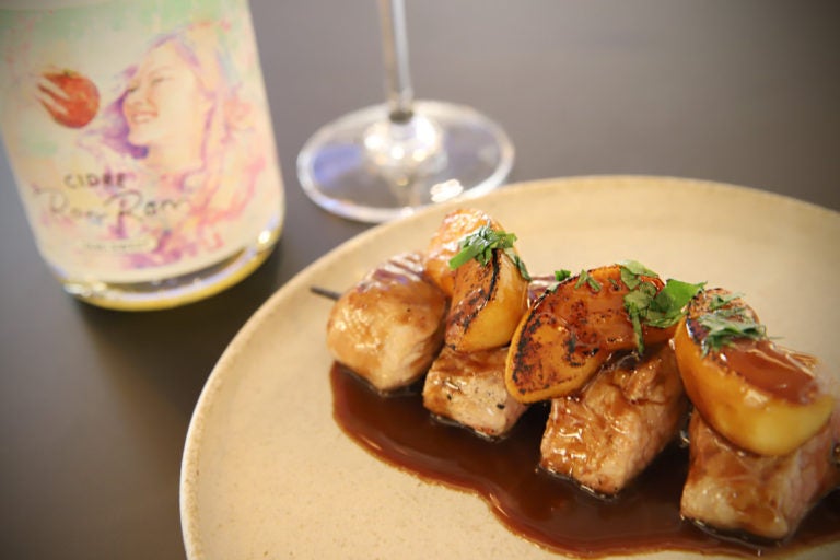 豚フィレ肉と兵庫産リンゴのBBQブロシェット ロンロンのシードルソース