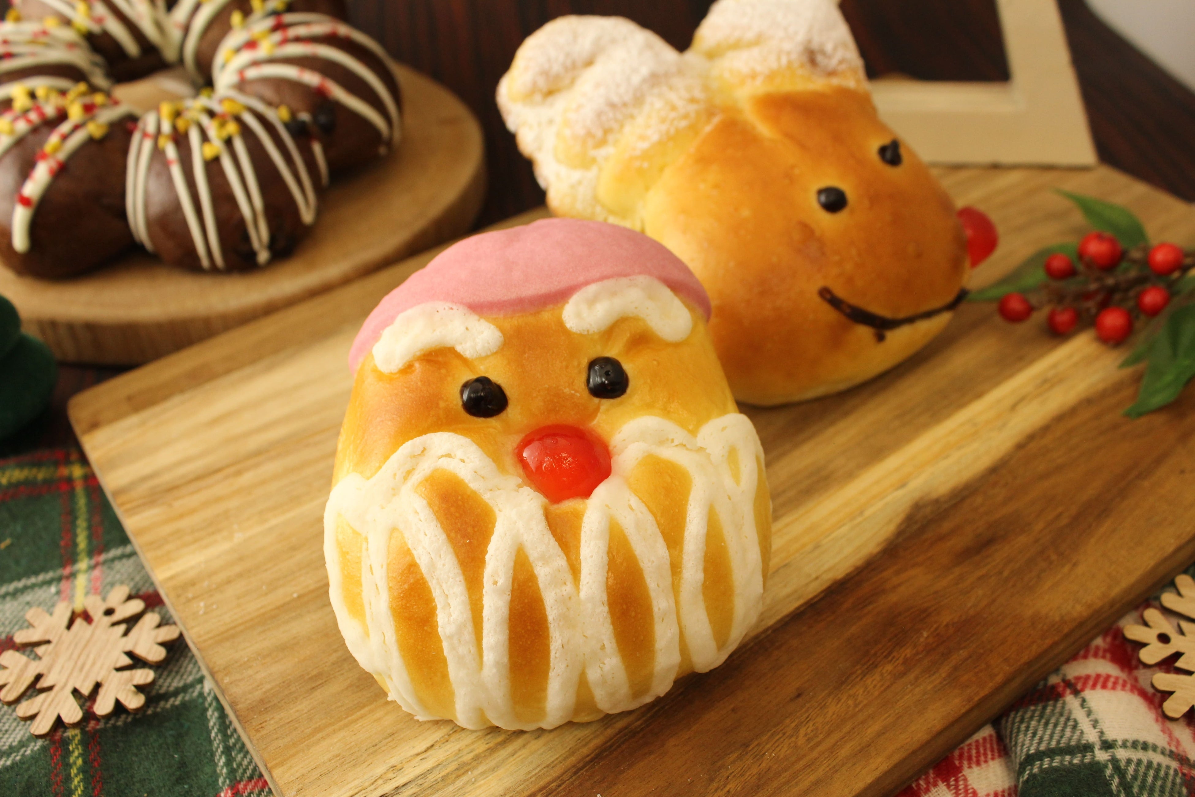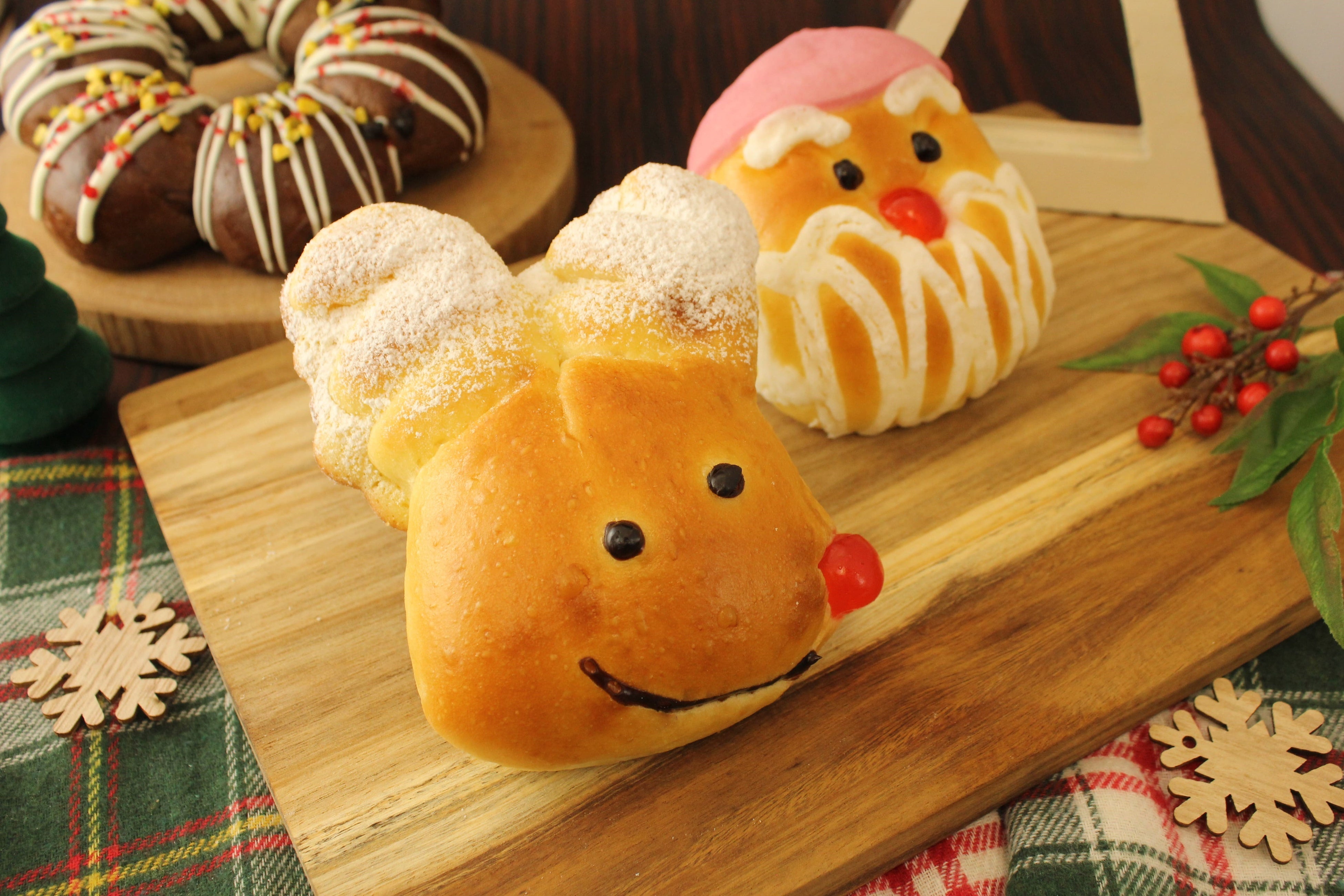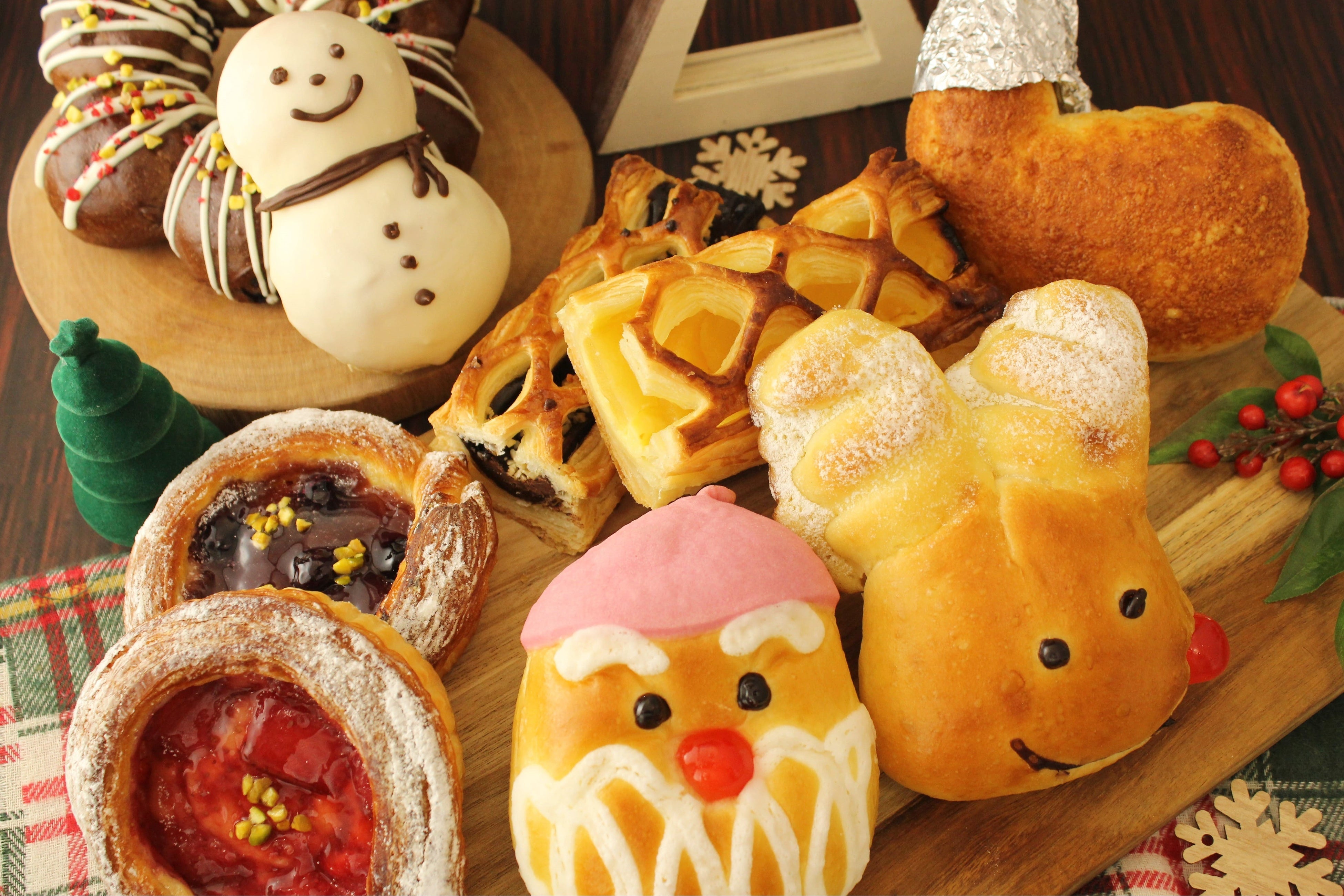 一年の最後を締めくくる一大イベント!クリスマスを目前に、今年も賑やかなパンたちが登場を待ちわびています。甘いクリームを抱えたサンタさんとトナカイに雪だるま。ちぎって食べやすい彩り鮮やかなチョコリースと、ボリューム満点のフライドチキンに見立てたフランスパン。デザートにはベリーを使った2種のデニッシュに、みんなで分けたいなが~いパイをスタンバイ。